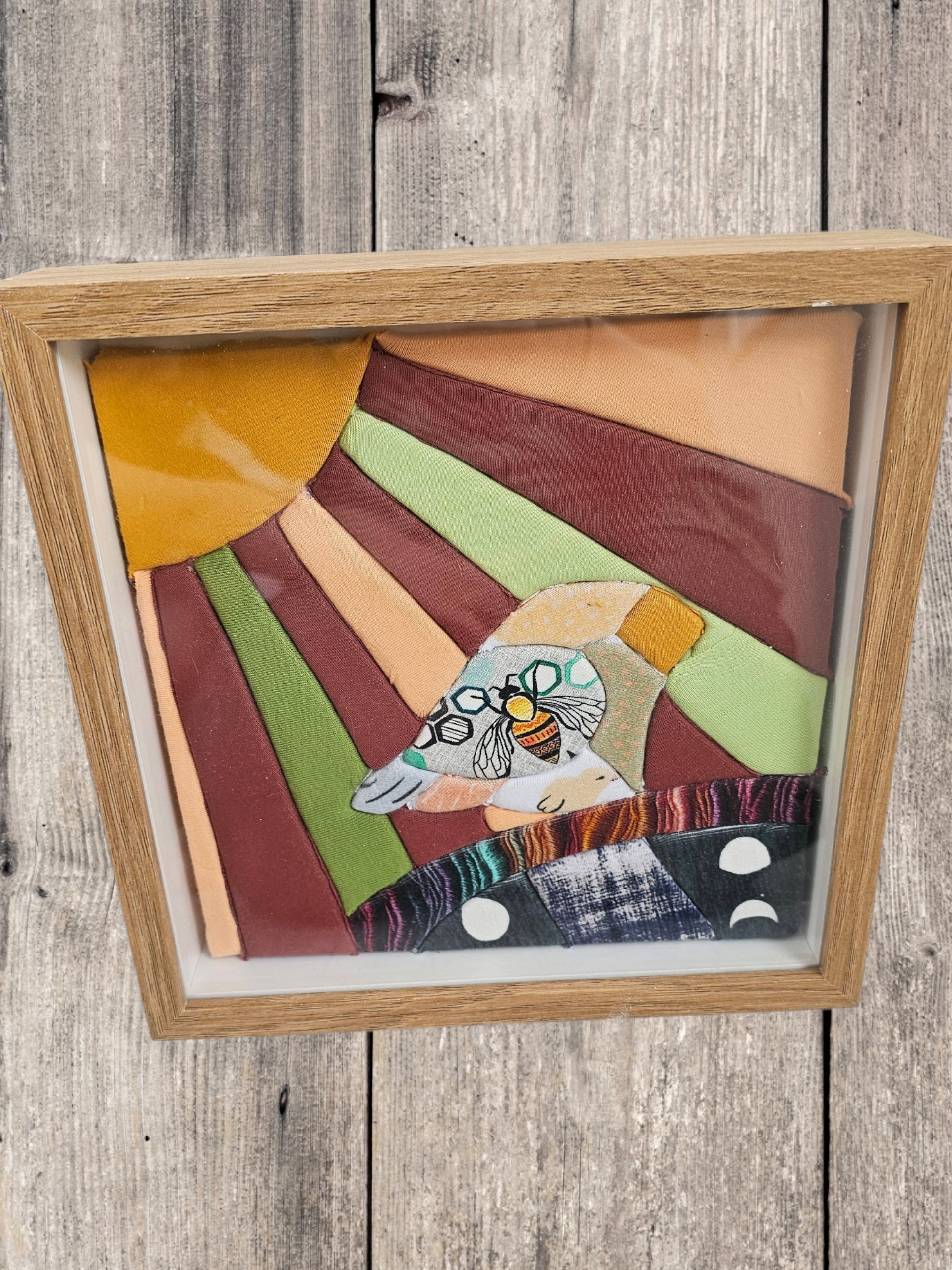 During the workshop, you'll create a 7x7 fabric artwork and finish it in a shadow box frame, ready to display at home.
