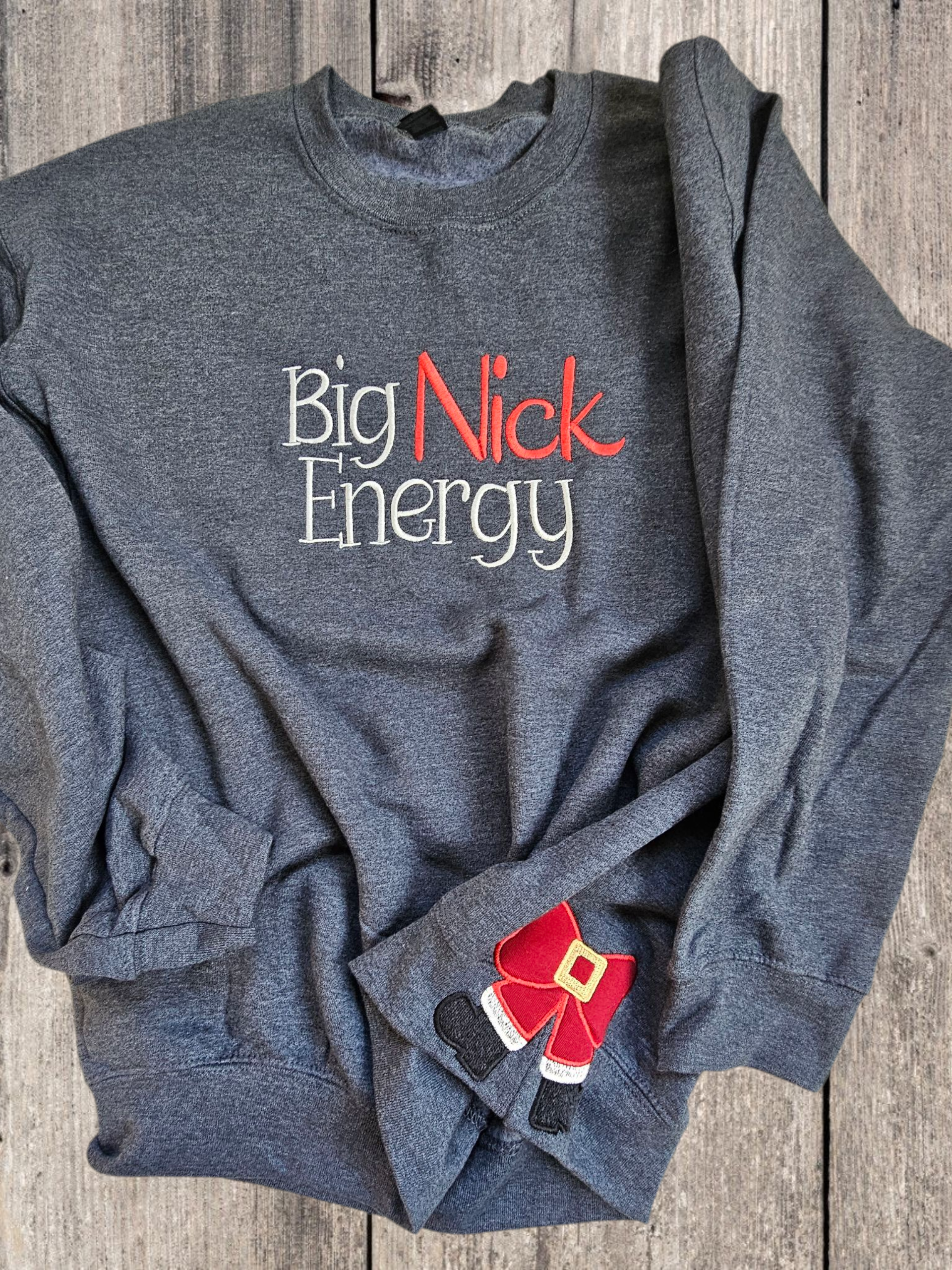 “Big Nick Energy” Embroidered Sweatshirt – Festive Fun with Santa Flair