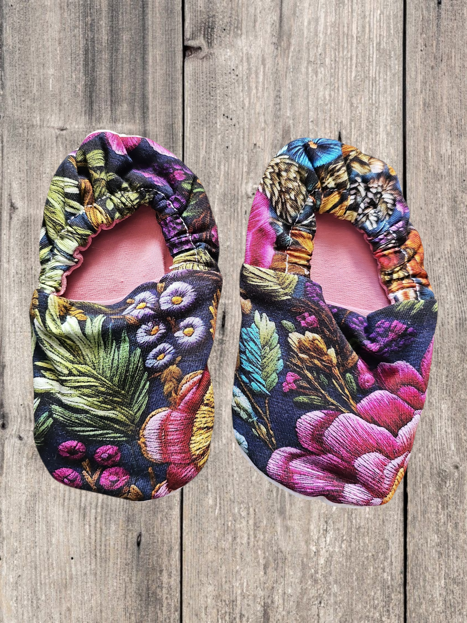 These slipper shoes/socks are so perfect for tiny little feet. The ankles have elastic in them and the fabric is made of soft and stretchy material for comfort and warmth.